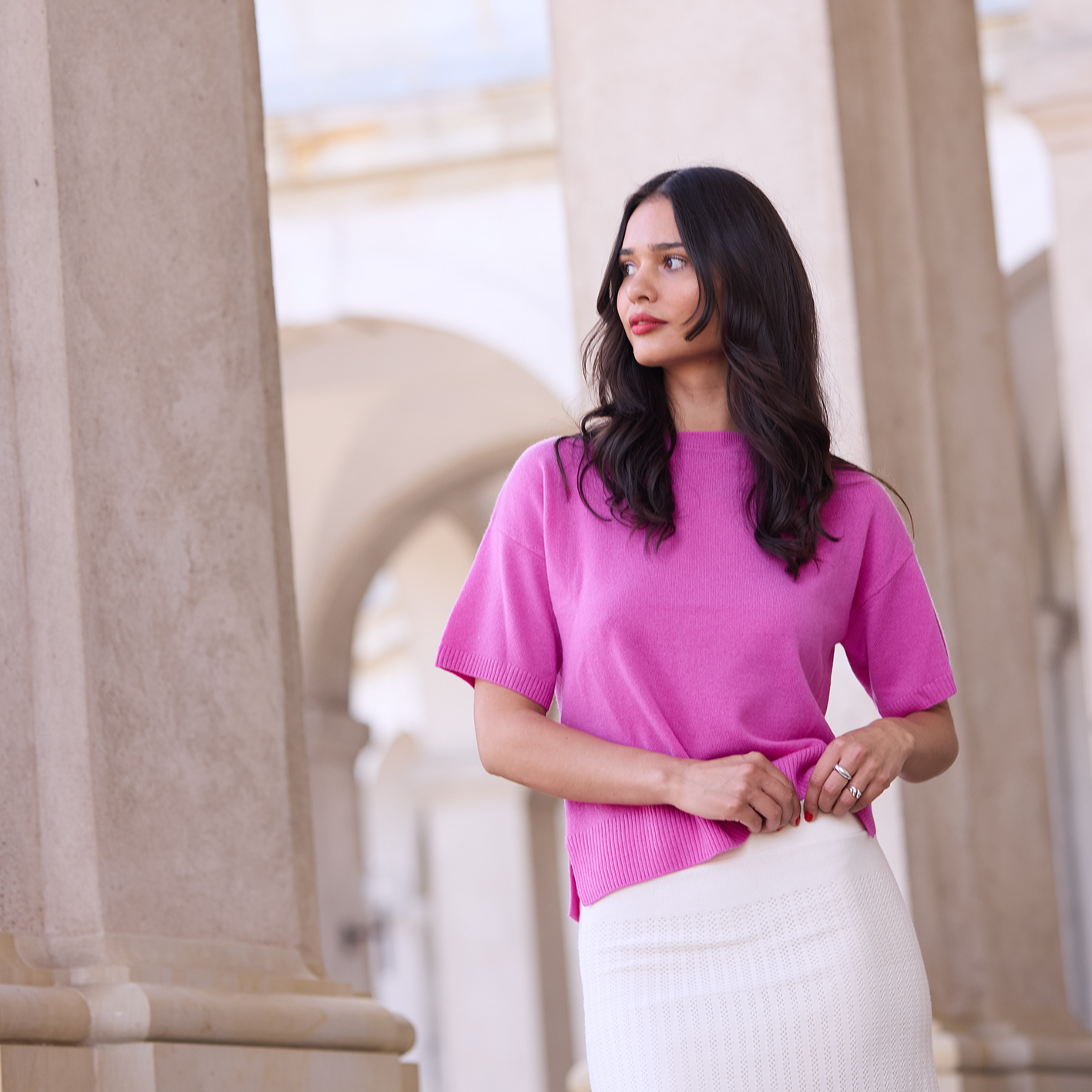 Unsere Kaschmir- und Seidenkollektion vereint das Beste aus zwei Welten – die unvergleichliche Wärme von Kaschmir und die luftige, strahlende Eleganz von Seide. Das Resultat sind luxuriöse Styles, die zeitlosen Charme und raffinierte Eleganz verkörpern. Perfekt für einen stilvollen Kurzurlaub in Frankreich, bei dem Komfort und Eleganz harmonisch miteinander verschmelzen.