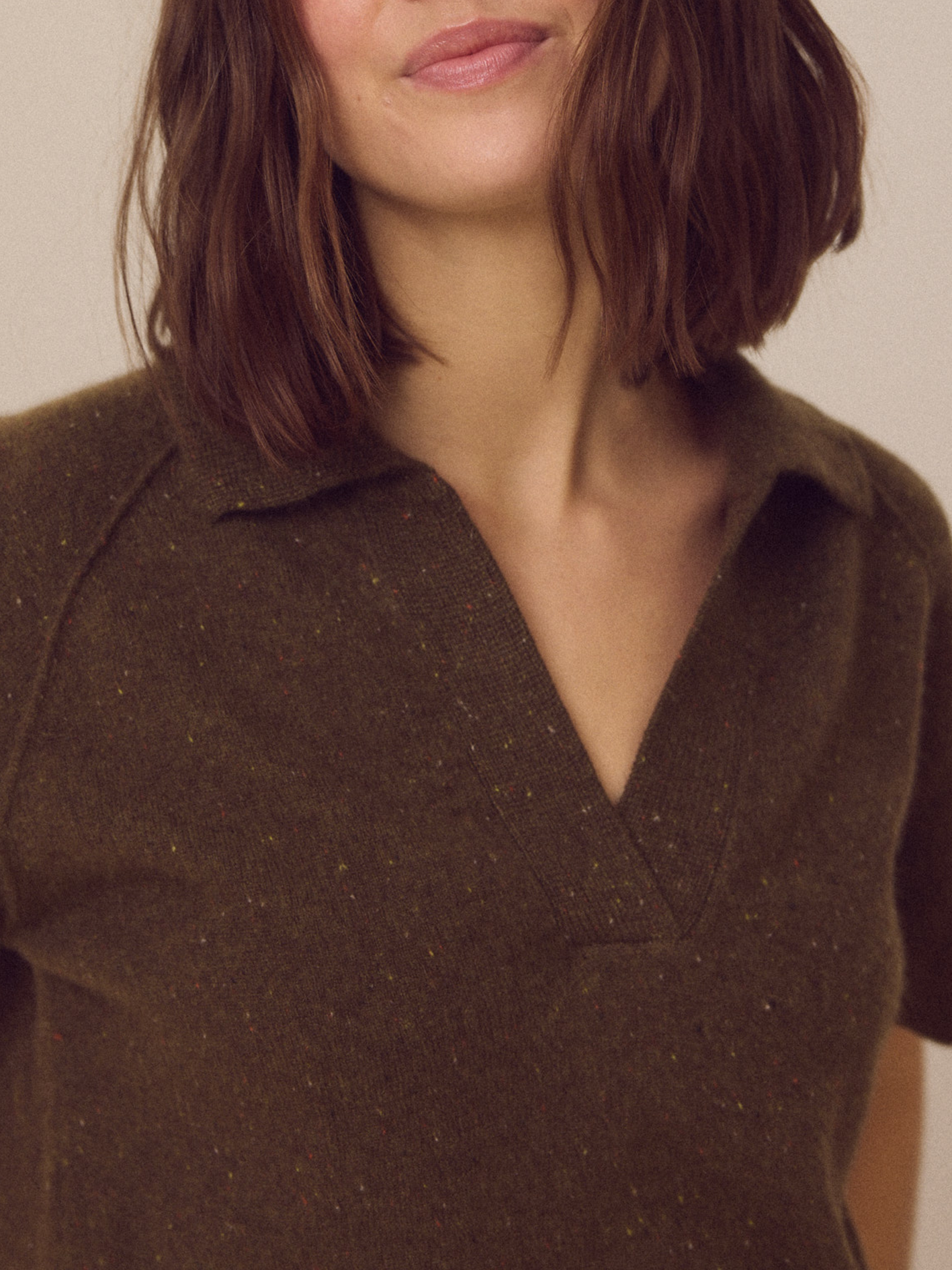 Klassisk polo t-shirt i 100% cashmere fra Indre Mongoliet med stolpelukning og ribstrikkede kanter ved hals, ærmer og hofte.
