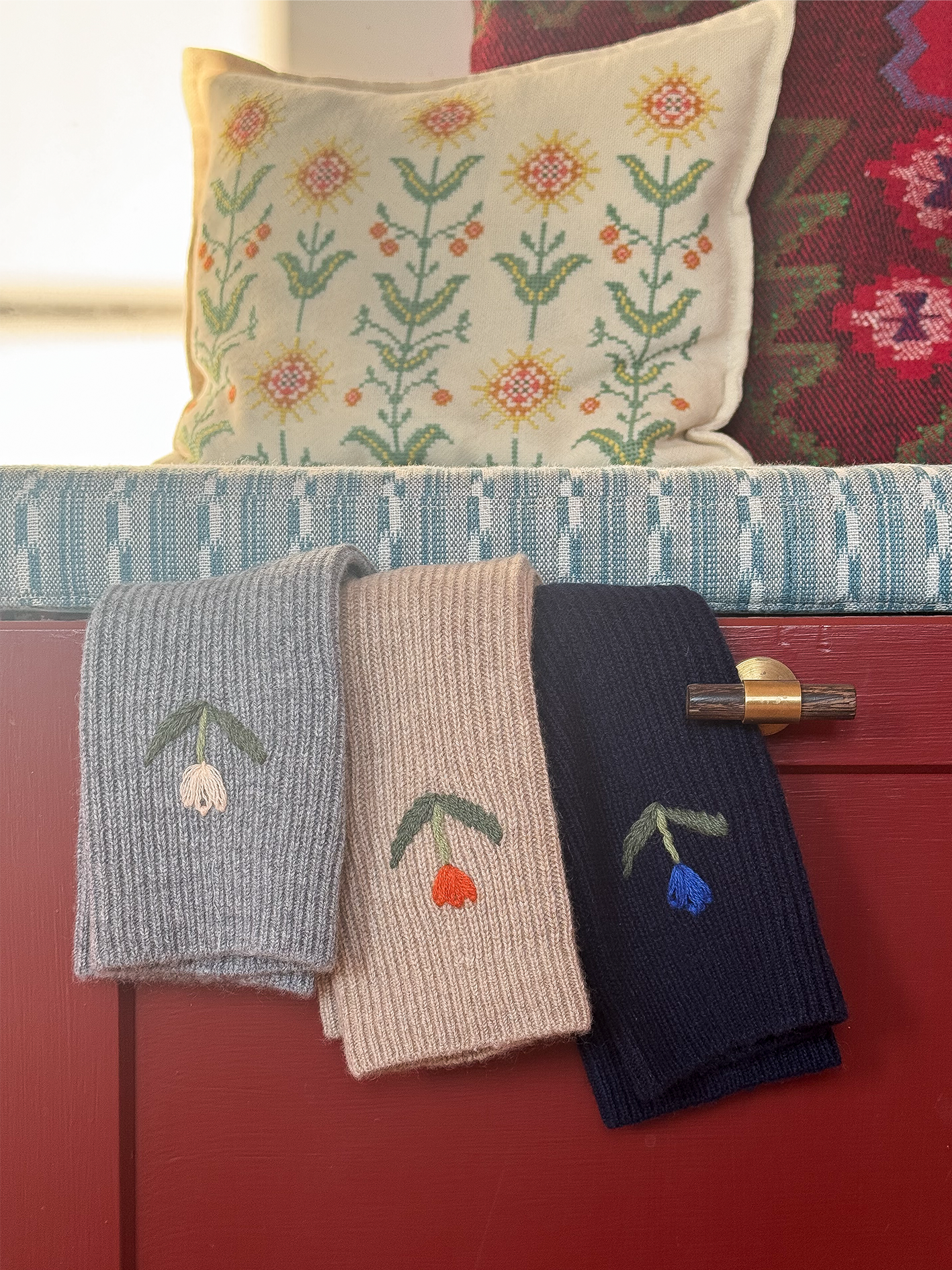 En legende tilføjelse til The Tulip Collection, skabt i samarbejde mellem ROTÉ & Wuth Copenhagen. Disse luksuriøse sokker er strikket i 100% cashmere fra Indre Mongoliet og prydet med broderede tulipan-detaljer, der bringer et strejf af kunst og farve til ethvert outfit.
